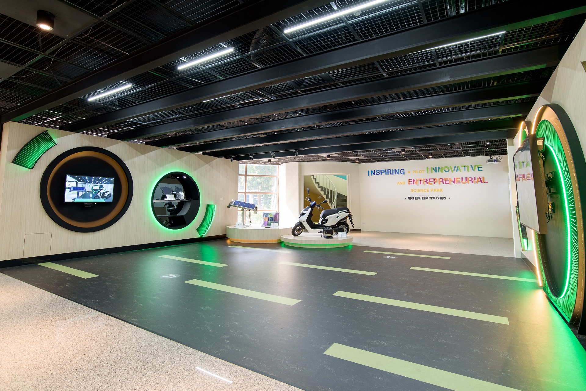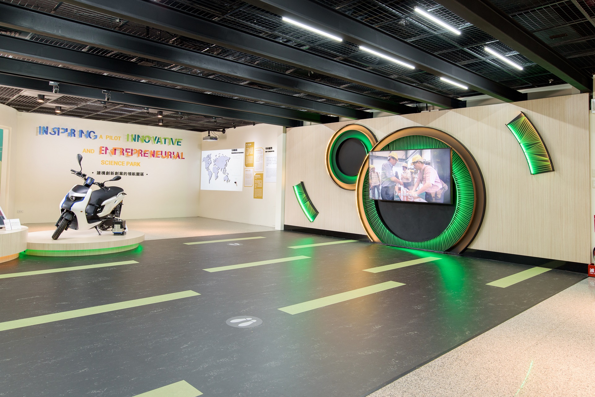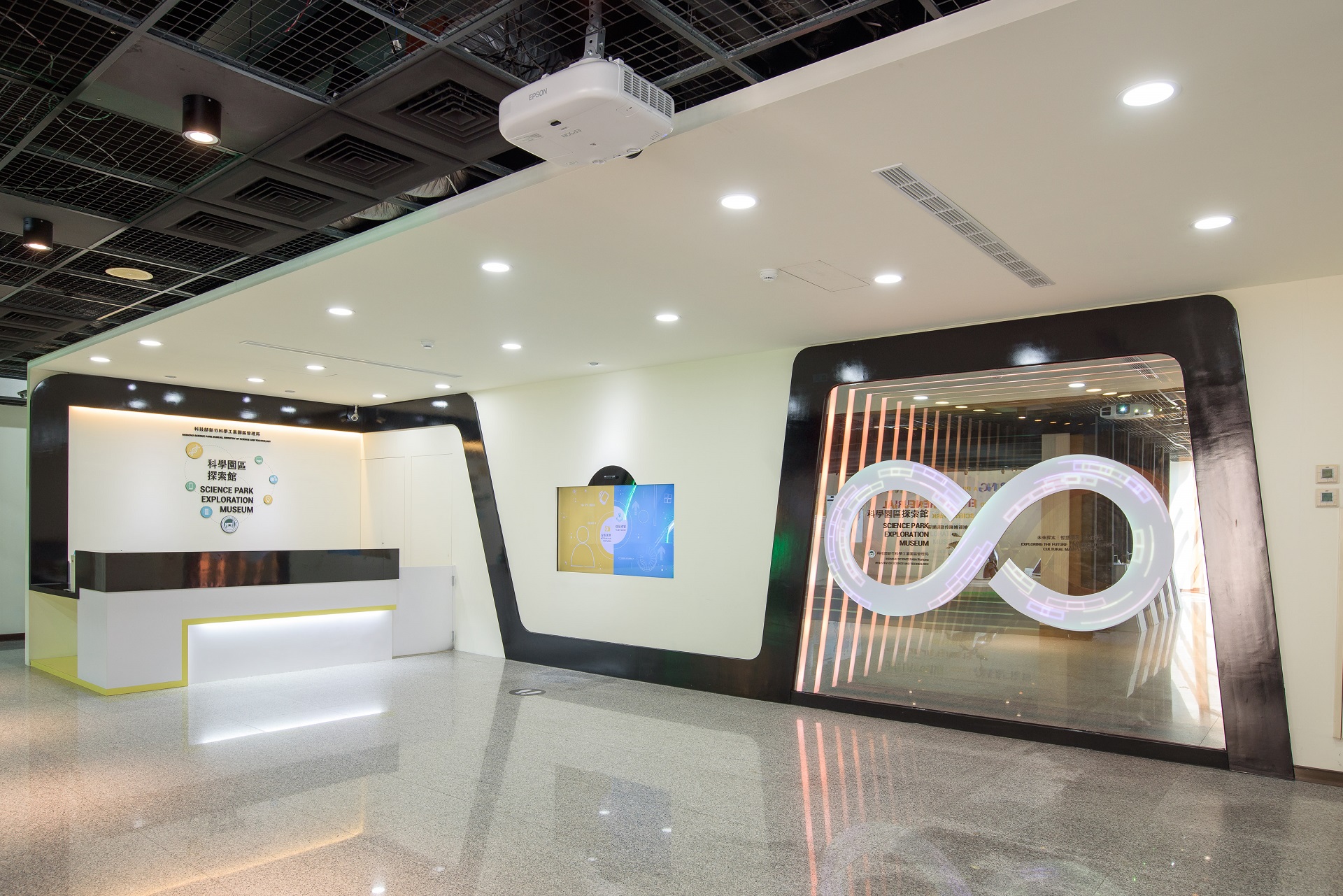 探索館一樓為開闊的展示空間,落地玻璃牆引入陽光,開放且明亮,在這裡設置有科技革新區、綠色趨勢區、竹科國際脈動及未來願景,並以光雕投影作為開場,引領訪賓進入竹科之門。