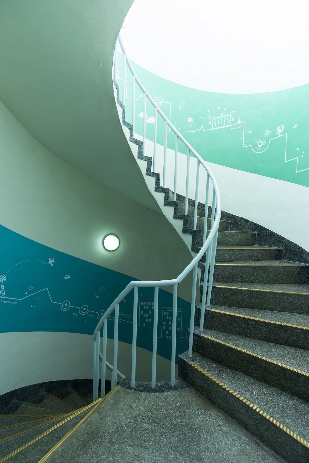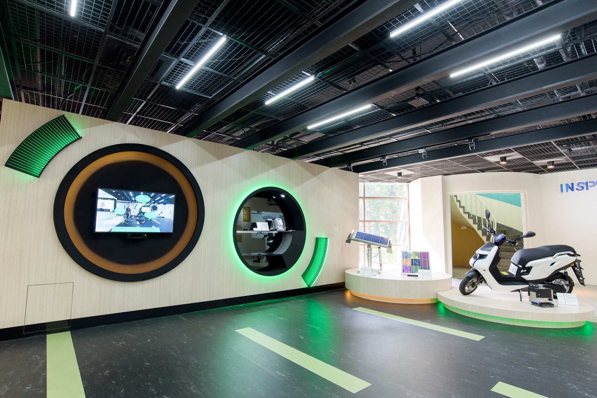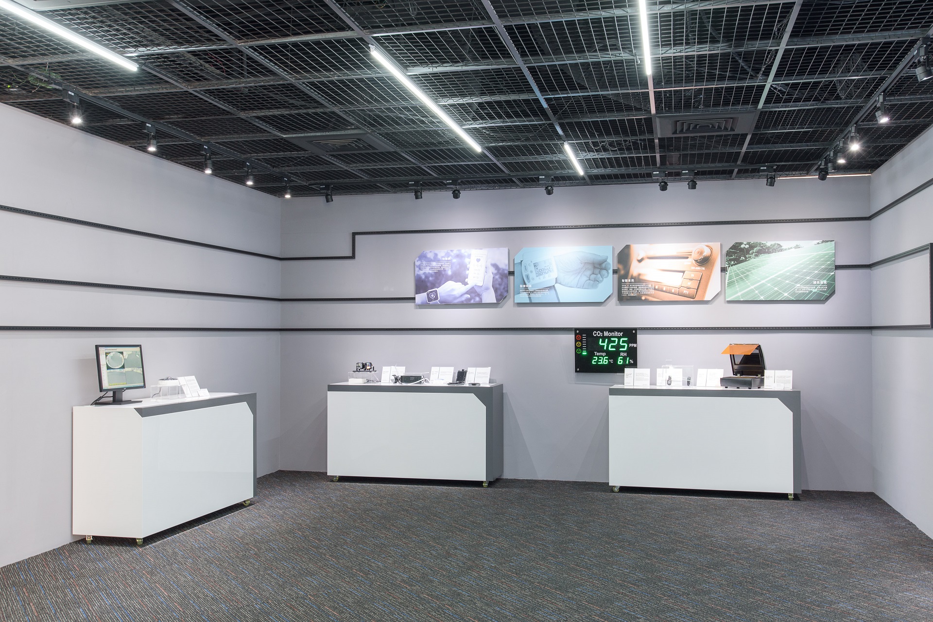 探索館一樓為開闊的展示空間,落地玻璃牆引入陽光,開放且明亮,在這裡設置有科技革新區、綠色趨勢區、竹科國際脈動及未來願景,並以光雕投影作為開場,引領訪賓進入竹科之門。