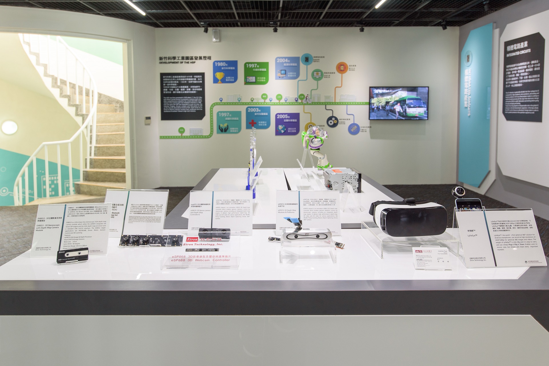 二樓展區自竹科六大園區發展歷程導入區內六大產業及產品,藉由分門別類的介紹,到最後的跨域應用產品,向您展現竹科蓬勃發展、持續創新的科技能量。